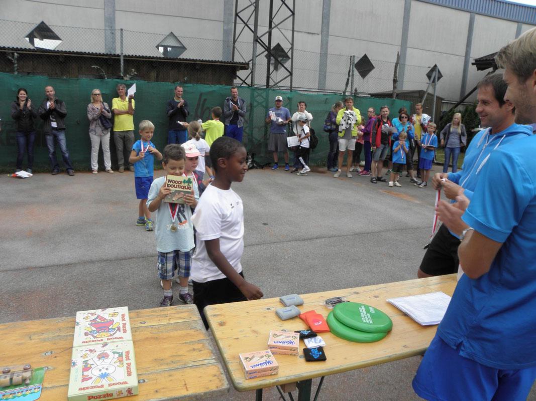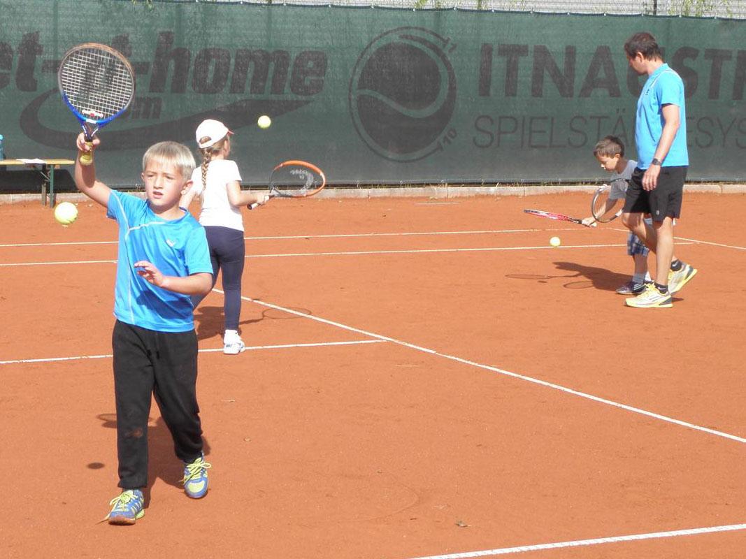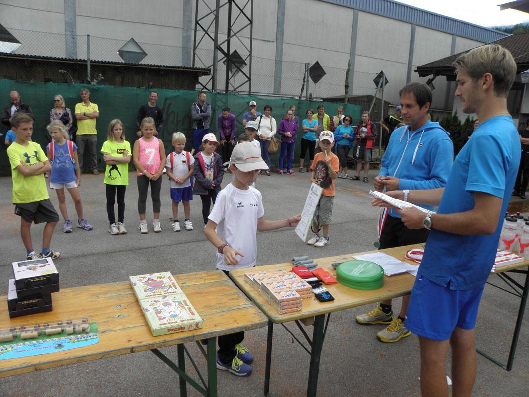 Am Sonntag, dem 18.9.2016 fand auf unserer Tennisanlage das bereits 3. Kinder-Tennisfest statt, das von Gerhard (Jugendwart), Lukas (Jugendwart+Trainer) und Tom (Trainer) organisiert und durchgeführt wurde. Das Wetter hielt gottseidank, und somit konnte ein tolles Fest gefeiert werden, bei dem natürlich der Tennissport im Vordergrund stand. Aber auch Spiel und Spaß kamen nicht zu kurz. Kinder und Eltern waren begeistert. Die Kleinen wurden mit tollen Preisen, Urkunden und Medaillen für ihre sportliche Leistungen belohnt. Ja, und somit freut sich schon jeder auf das nächste Kinder-Tennisfest. Gratulation an unsere Jugendwarte und Trainer, die sich sehr für dieses Kinderfest ins Zeug legten!